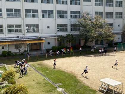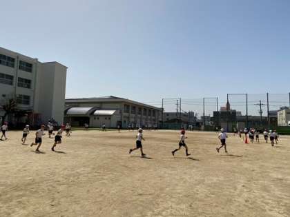 運動場全体を使ってサーキットをしています。
