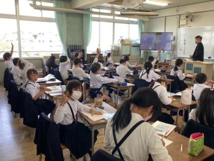 1組の国語科(詩の学習)と、2組の道徳科の学習のようすです。