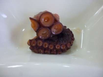 ぶつ切りのたこを砂糖、酒、みりん、しょうゆで煮こんでいます。