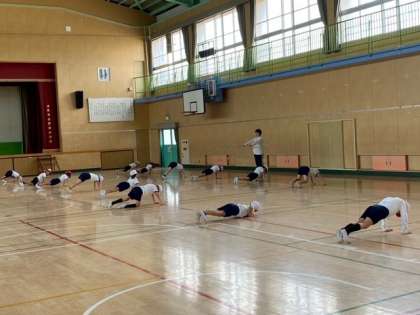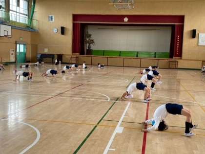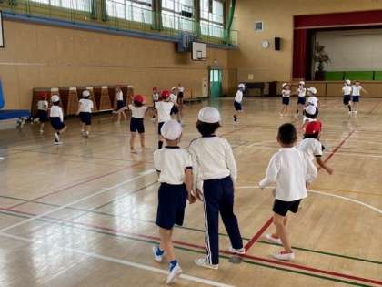 子どもたちが、元気よく 体ほぐしや運動遊びをしていました。