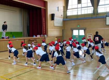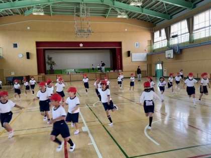 運動遊びの楽しさを味わっています。