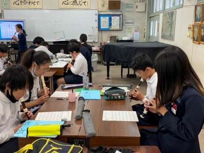 「いつも何度でも」(千と千尋の神隠しの主題歌)の楽譜を読みながら、リコーダーの練習をしました。