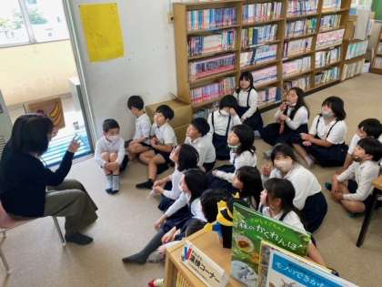 時間の終わりには、学校司書さんから「絵本の読みきかせ」をしてもらい、楽しそうに聞いていました。