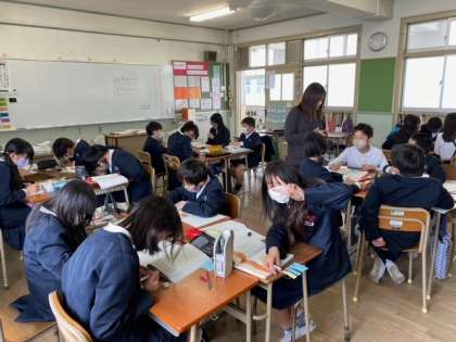 1組の国語科は、谷川俊太郎の詩「生きる」を読んで、生きることについて考えました。