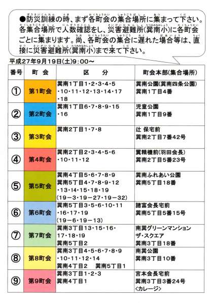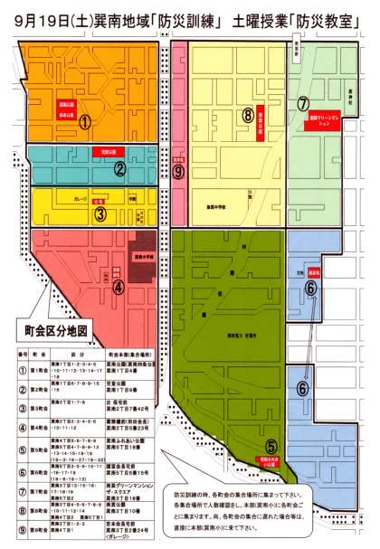 9月19日(土)の地域と連携した「防災訓練」について、お知らせいたします。この取り組みは、昼夜問わず突然に発生する災害に備え、地域・学校が一体となり、住民や特に子どもたちの「いのち」を連携・協力し守っていく防災救助訓練です。つきましては、地域の皆さまが多数参加していただき、連携強化を図り、自助・共助を高めていただくよう、ご協力よろしくお願いいたします。