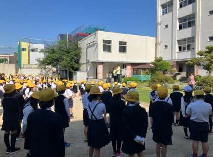 次に、生野区役所の地域まちづくり課の方に来ていただき、自転車の乗り方や「交通安全」について子どもたちへ話をしてもらいました。