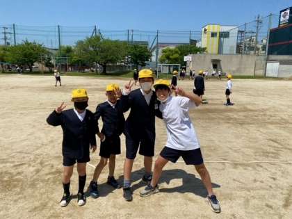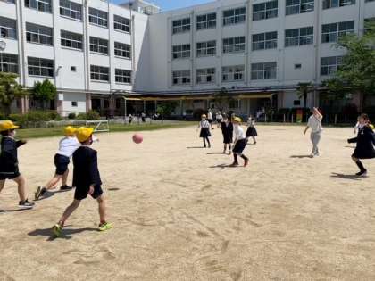 子どもたちが、気持ちよさそうに運動場で遊んでいます。