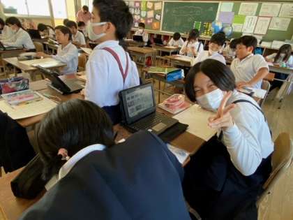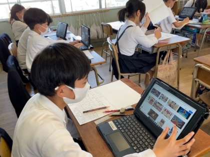 タブレット端末を使って調べたものを画用紙に書き添え、オリジナルのカレンダーができました。