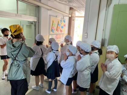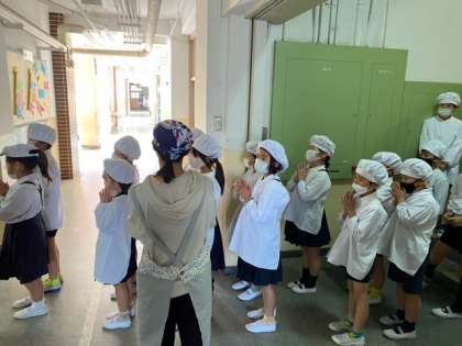 給食室の前では、毎日、給食委員会の担当児童が、今日の献立を説明しています。