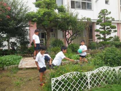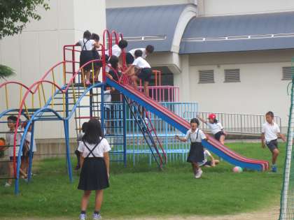 9月に入り雨が多く、運動場で遊べない日が続いています。この日は、たくさんの子どもたちが運動場にとび出してきて、元気に遊んでいました。