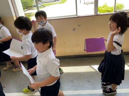 2年生の児童が、来週1年生の児童を「学校たんけん」に案内します。