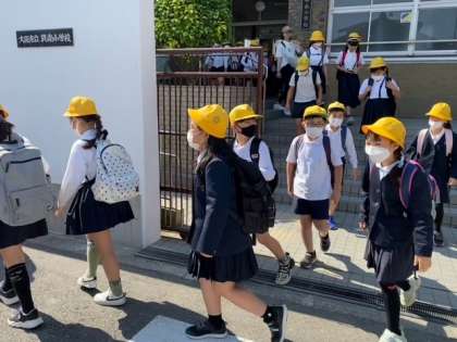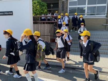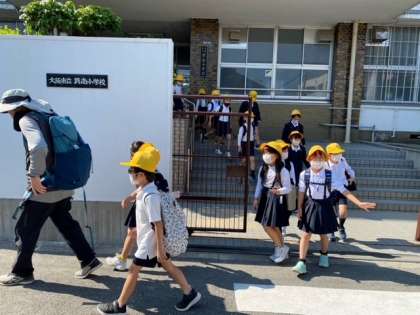 今日は、3年生・4年生の子どもたちが楽しみにしていた遠足です。子どもたちを、正門で見送りました。
