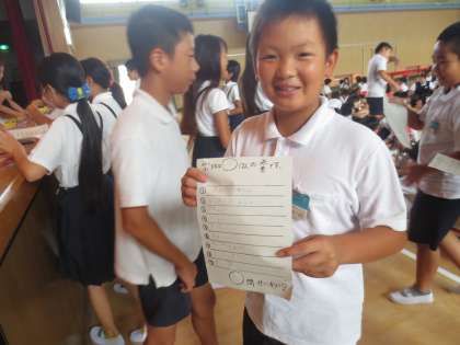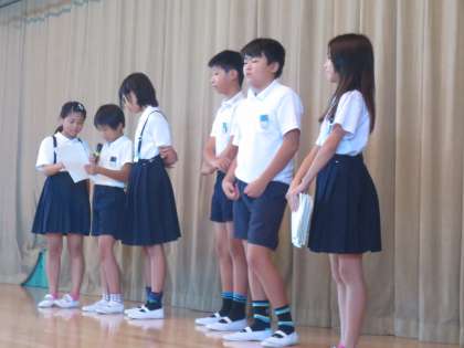 たて割班で考えた答えを集会委員にだしています。「ジェスチャーゲーム」はとても楽しかったようです。