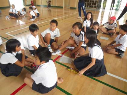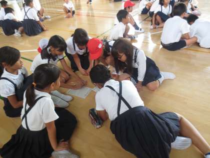 楽しくジェスチャーゲームをしていますが・・・なかなか答えが難しく・・・考え込んでいました。