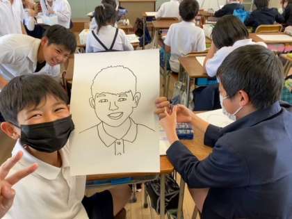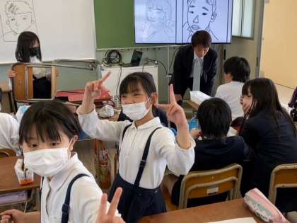 1組の図画工作科では、子どもたちが「自画像」にチャレンジしていました。