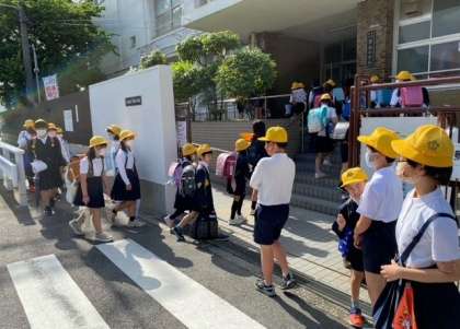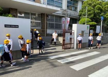 登校してくる児童も、気持ちのよいあいさつを返していました。