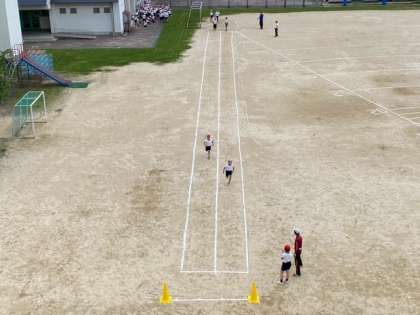 5年生は、「全国体力・運動能力、運動習慣等調査」の対象学年として、50メートル走・ソフトボール投げ以外にも、上体起こし・反復横とび・握力など、今日から順次8種目を行っていきます。