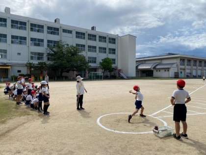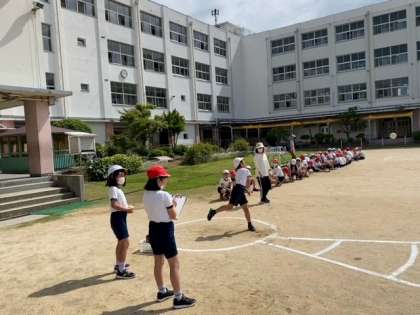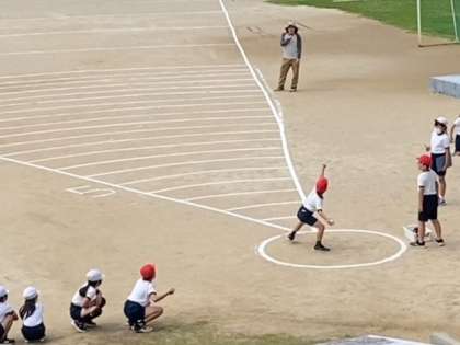 投げる児童に、待っている児童が拍手や応援の声かけをしていました。