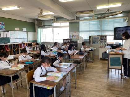 1組の国語科は単元テストのプリントをしていました。