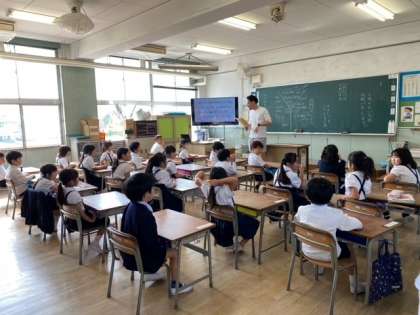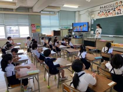 水曜日の朝の短学活は「イングリッシュタイム」です。