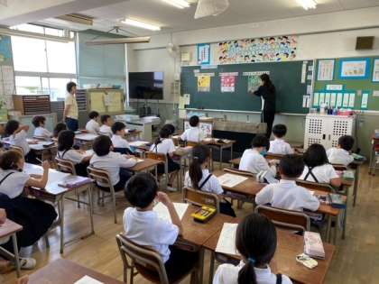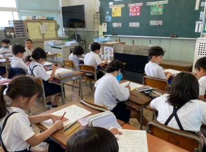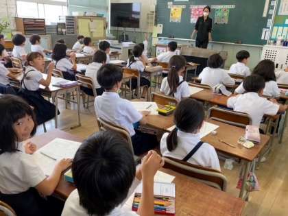 今日は2年生の子どもたちが「じょうぶなからだのつくり方」のテーマで三色食品群について学習しました。