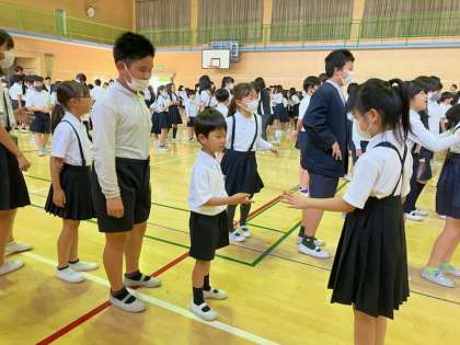 縦割り班で活動し、1年生から6年生までの子どもたちが、一緒に仲よく楽しみました。
