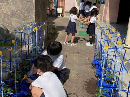 5/18 「ミニトマト」の水やり(2年生)