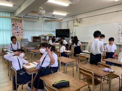 4年生の教室では、子どもたちがニコニコとおしゃべりをして過ごしていました。