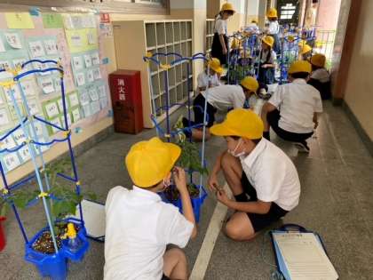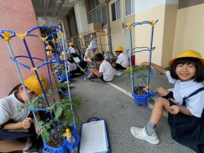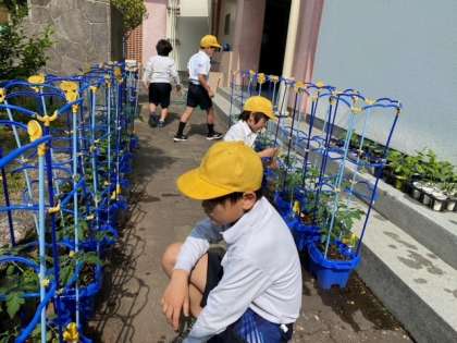 「そだてています」の観察カードに、ミニトマトの絵と気づいたことを書いていました。