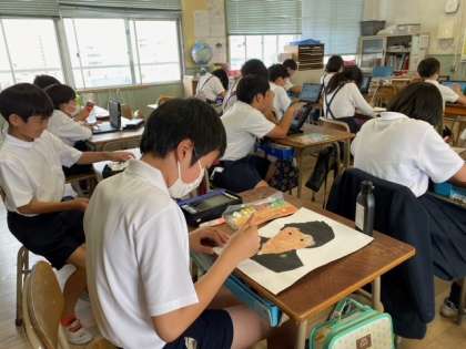 1組の国語科と図画工作科の教科を横断した学習です。