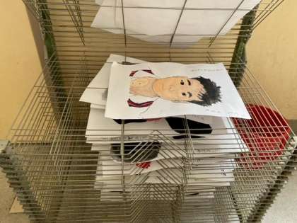 国語科で学習した「だいじょうぶ だいじょうぶ」から、自分にとっての「だいじょうぶ」を考え、その言葉を添えて自画像を描きました。