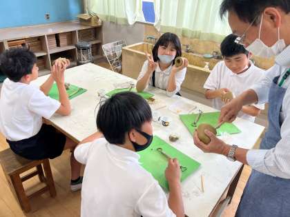 「近つ飛鳥博物館」から来ていただいた講師の方の説明を聞き、はにわづくりに取り組みました。