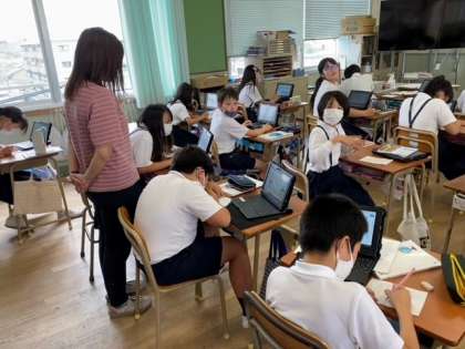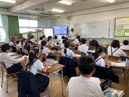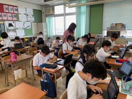 2組の国語科は、「防災ポスターをつくろう」の単元で、子どもたちが、タブレット端末を使って、ポスターづくりのための調べ学習をしていました。