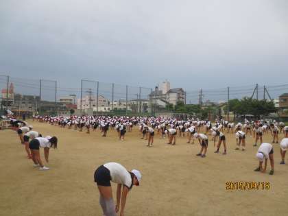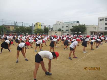 最初の全体練習ですが、ラジオ体操第1の動きをしっかりとできていました。
