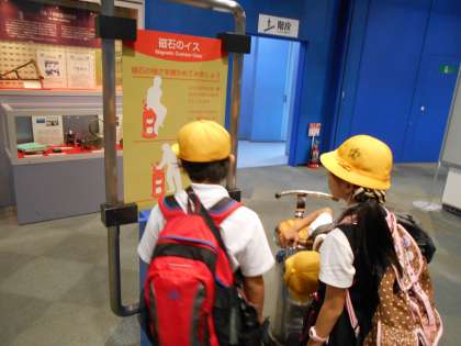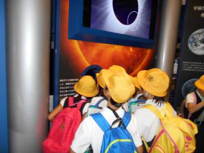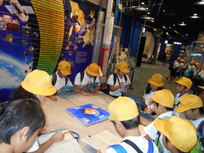 子どもたちは、大阪市立科学館では、展示に触ったり、観察したり、確かめたりしながら、いっぱい疑問をもちながら班ごとで協力して見学をしていました。
