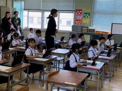 1年生は、タブレット端末を使った学習で、「ぱすわあど について しろう」です。
