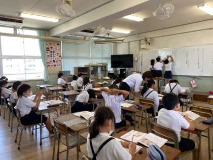 道徳科の学習で、「さち子のえがお」の教材を通して、善悪の判断について考えました。
