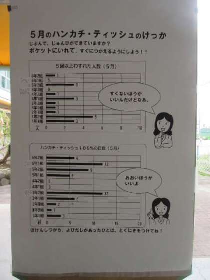 学校では、毎朝健康観察とともに、ハンカチティッシュの