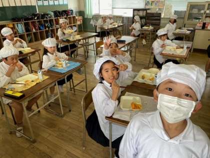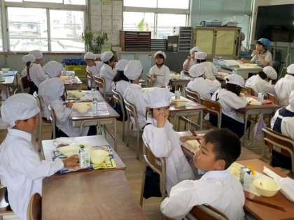 子どもたちがテキパキと配膳をすませ、ゆっくりと食べています。