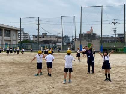 3年生の子どもたちは、実習生と一緒にドッジボールをしていました。