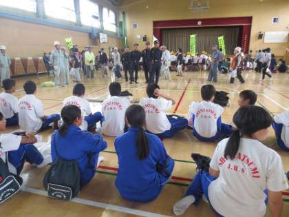 9/19 土曜授業「地域防災訓練」体育館での防災訓練
