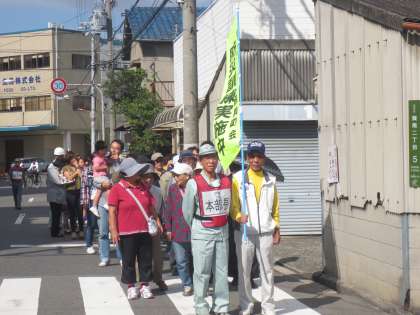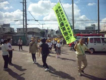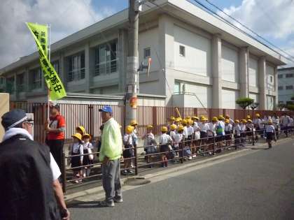 9時15分ごろ、一時避難所で人数が確認できたら、災害避難所である巽南小学校の運動場へ避難を開始しました。