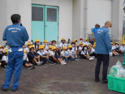 大阪市環境事業局の方の来ていただき、パッカー車体験の出前授業を行いました。