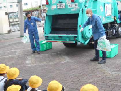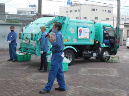 パッカー車のしくみやごみの分別方法・ごみを出す時のマナーなどについて説明を聞きました。
