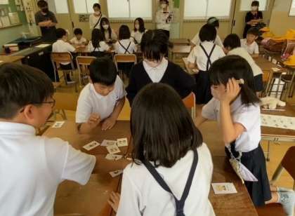グループごとに、家族の絵を描いたカードを使った「カルタ」をして楽しんでいました。