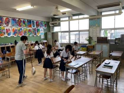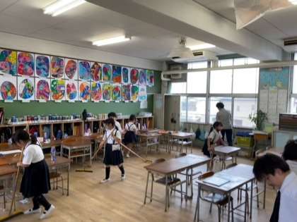 子どもたちが、先生と一緒になって、自分たちが使っている教室や廊下をきれいにしていました。