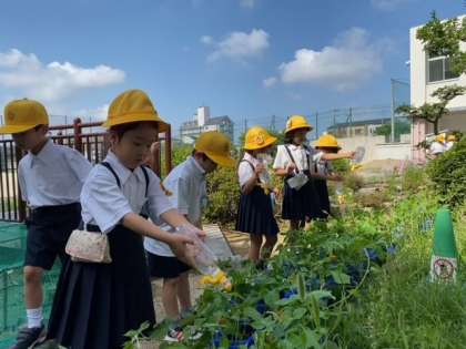 今日は暑くなりそうですね。たっぷり水をあげていました。