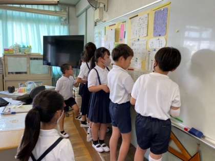 遠足についてまとめた班、先生たちへのインタビューを記事にした班など それぞれ出来上がりが楽しみです。