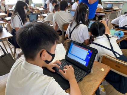 様々な地球環境問題について、タブレット端末で調べ、資料やグラフを活用しながら、報告する文章にまとめ、パワーポイントにしました。