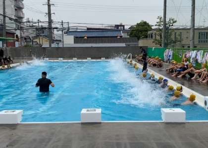 クロールのバタ足の練習です。ビート板も使って練習しました。